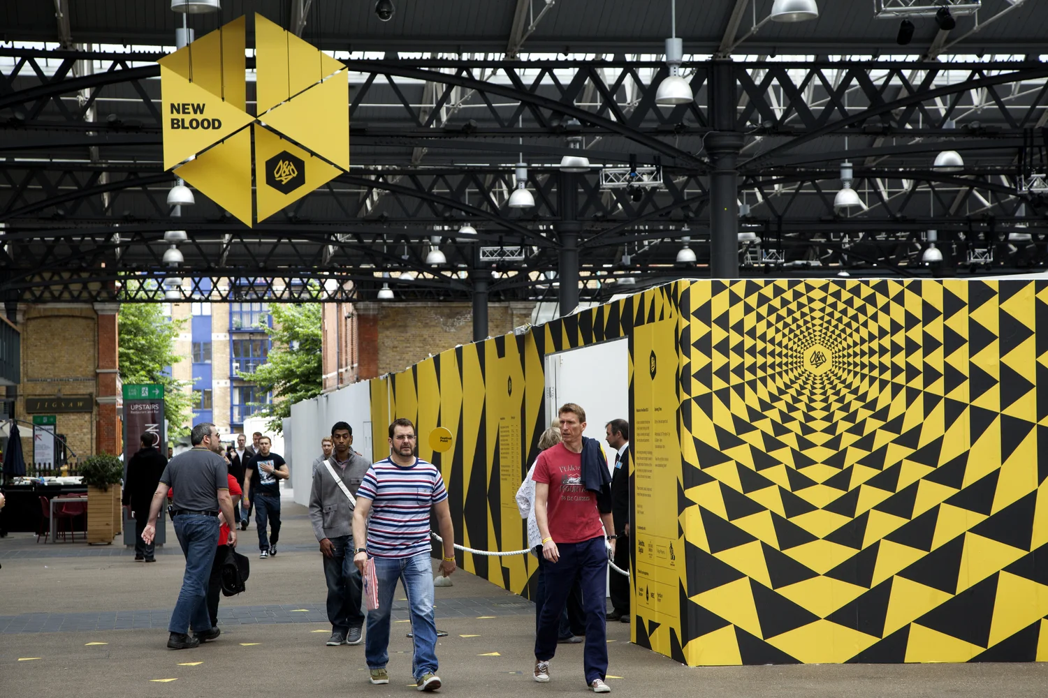The branding system we developed had three distinct and adaptable optical illusion style patterns that were used across the three New Blood events; the student exhibition, the student awards and the graduate academy.
